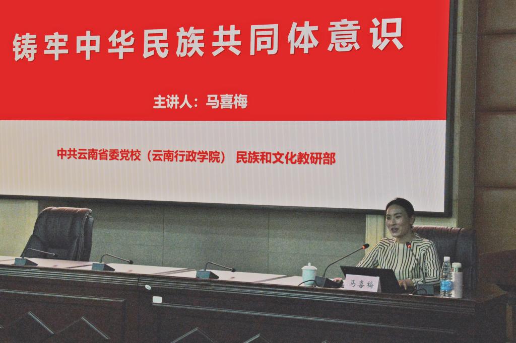 为深入推进铸牢中华民族共同体意识教育示范学校创建试点工作,4月21日,学校邀请省委党校民族和文化教研部副教授马喜梅,在云帆楼第一报告厅作了主题为“学习贯彻党的二十大精神 铸牢中华民族共同体意识”的专题讲座。学校党委副书记张永和主持,学校领导、副科级以上中层干部和相关人员参加了讲座。