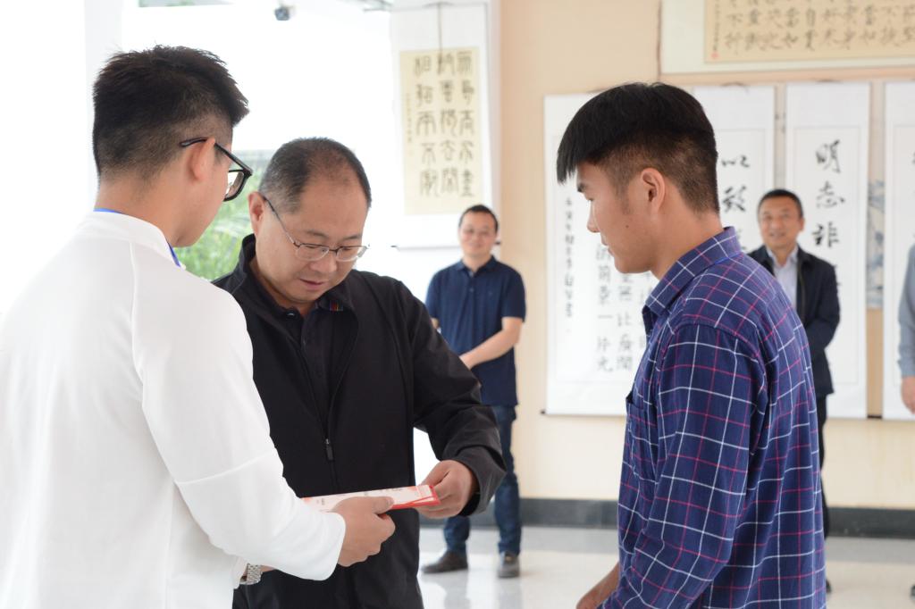 学校党委书记缪军在讲话中指出,此次书画展的成功举办,充分展现了体职院学生不仅有强健的体魄,而且也具备较高的文化艺术素养。他希望书画社同学们陶冶高尚情操,树立廉洁意识,继续提升自身的文化艺术素养。同时祝愿同学们在今后的学习生活中能够取得新的成绩,祝愿兰亭书画社团在今后的发展中迈上新的台阶。