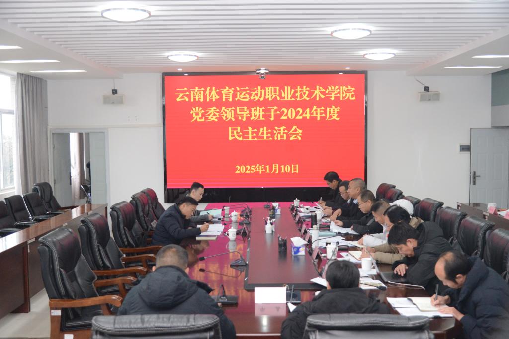 按照党中央决策部署和省委工作要求,1月10日,云南体育运动职业技术学院党委领导班子召开2024年度民主生活会,深入学习贯彻习近平新时代中国特色社会主义思想,巩固深化党纪学习教育成果,落实经常性和集中性相结合的纪律教育机制,深入进行党性分析,严肃认真开展批评和自我批评,为进一步全面深化改革、推进中国式现代化提供坚强纪律保证。党委书记缪军主持会议,省委教育工委第五督导组一行到会指导,组长作点评讲话。
