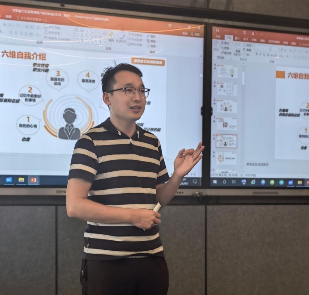 会议开始,社会体育与管理学院书记杨雪雯老师结合在校工作几十年的经验和感受,分享了参加“云南省高校生涯咨询师师资培训班”的心得。接着,门老师分享了参加“职业指导师师资培训班”的收获,重点讲解了“六维自我介绍”。两位老师均表示培训对教师的成长十分有帮助。随后,我校资深职业生涯规划课教师张立国老师从教材分析、教学内容选取、课件使用、考核方式等方面进行讲解,有效帮助新教师快速站稳讲台。张老师希望老师们能快乐工作,让兴趣成就事业。